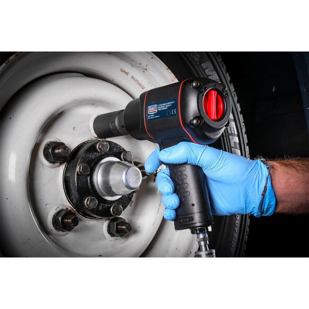 Heavy Duty Composite Air Impact Wrench - 1/2 Inch Sq Drive - Handle Exhaust